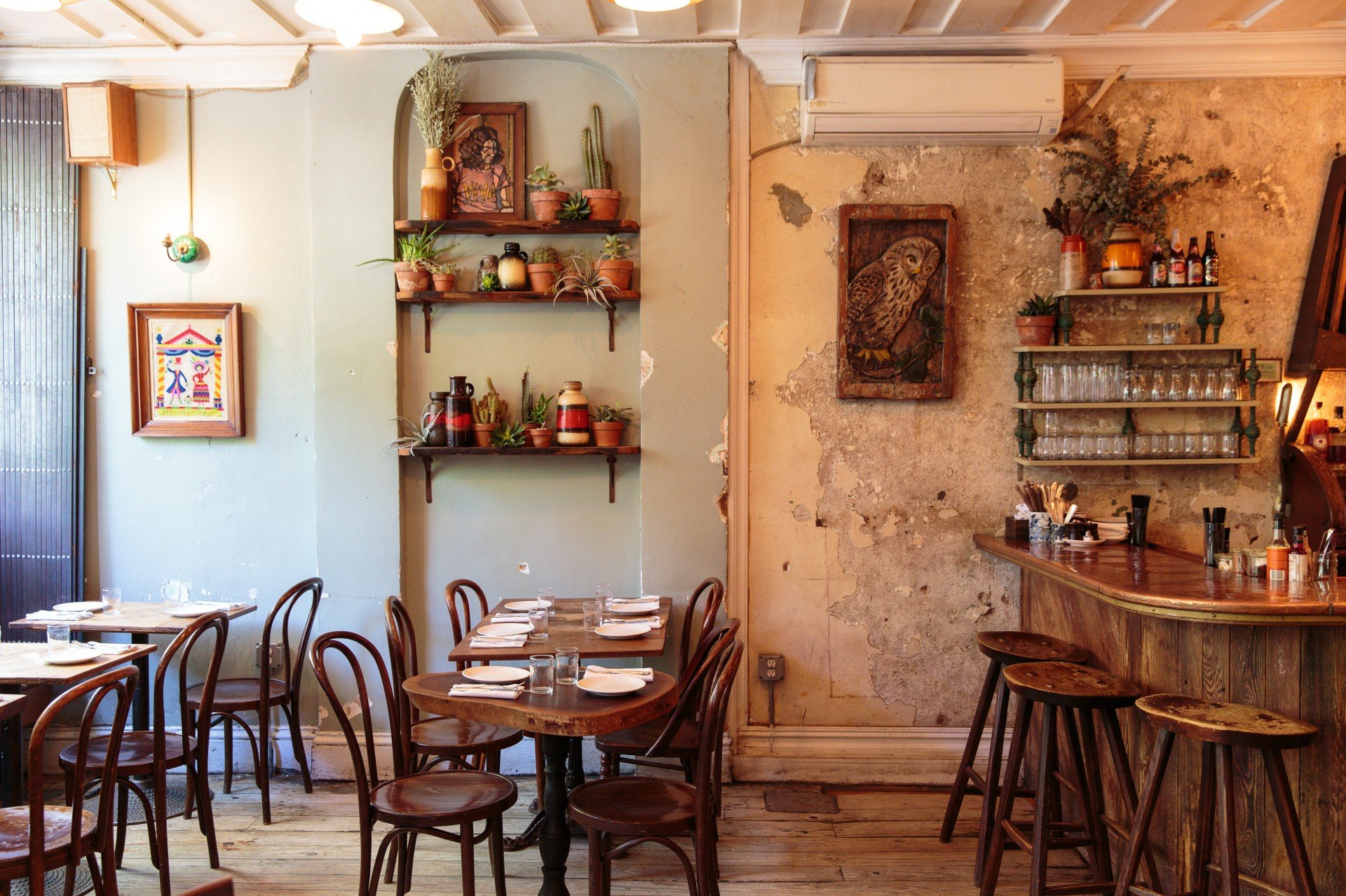 From hand-pressed heirloom corn tortillas to small-batch mezcal, Gran Eléctrica touts its authentic Mexican heritage at every turn. Nestled beneath the Brooklyn Bridge, this market-driven restaurant puts a twist on traditional Mexican street fare. Plus, the art tells the story: the intimate restaurant covers its interiors with an homage to the Day of the Dead.
